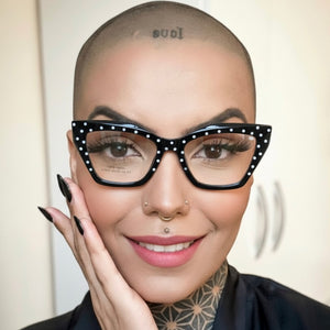 Armação Preta com Bolinhas brancas Clássica Gatinho Haste Grossa