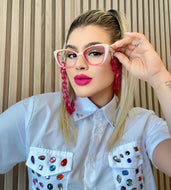 Armação de Grau Exclusivo Branco e Rosa Madrepérola Lindo Safari